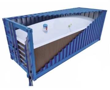 A flexible tank liner installed inside a standard 20ft ISO container. Used for liquid bitumen shipment under heated conditions.
